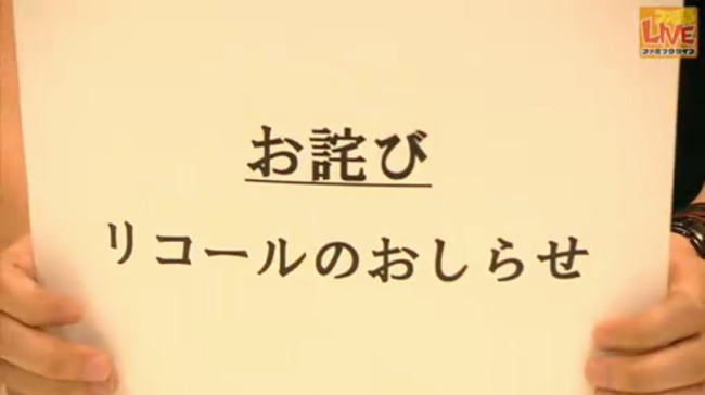 続いてはリコール(?)のおしらせ。