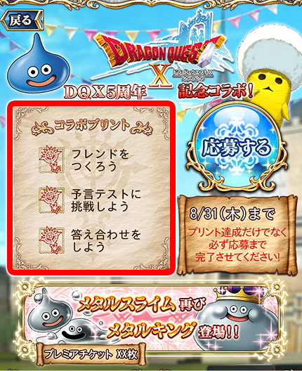 2. 「予言者育成学園」にて上記の条件を満たし、「予言者育成学園」の『ドラゴンクエストX コラボイベント会場』より「応募する」を押します。